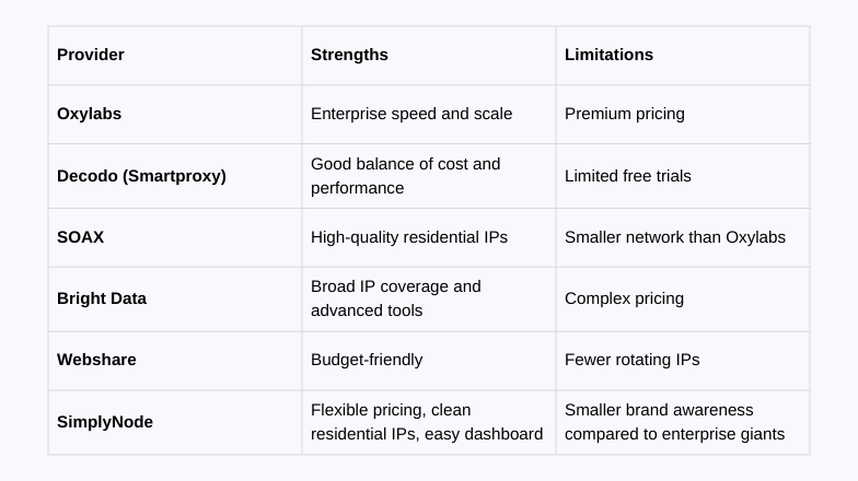Notable Proxy Providers Compared
