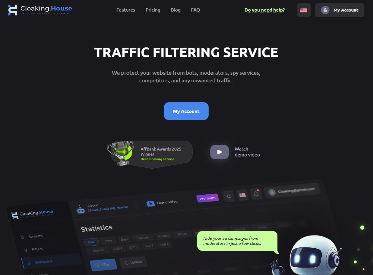 In this context, Cloaking House looks like a practical solution for teams that do not want to keep putting out fires after every ban, but instead want to build a more stable and manageable launch system. The service combines AI-based filtering, flexible settings, analytics, white-page generation, and integration capabilities, making it not just a supporting tool, but part of the everyday traffic infrastructure.